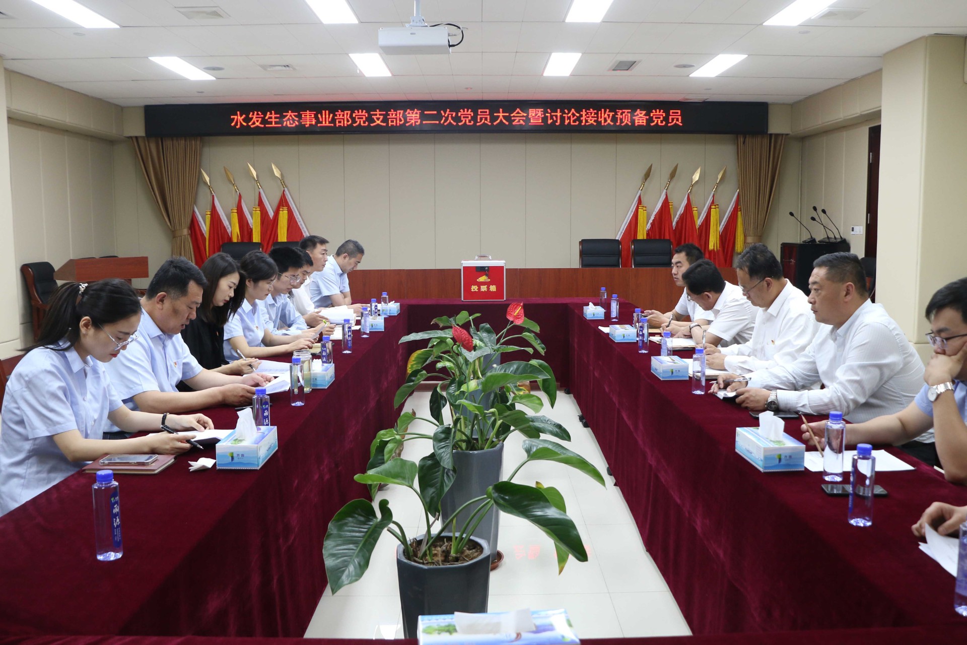 为进一步加强支部党员队伍建设, 5月28日,水发生态事业部党支部召开第二次党员大会,讨论接收预备党员,并进行了支部书记上党课活动。会议由事业部党支部书记黄建喜主持,全体党员和1名发展对象参加会议。