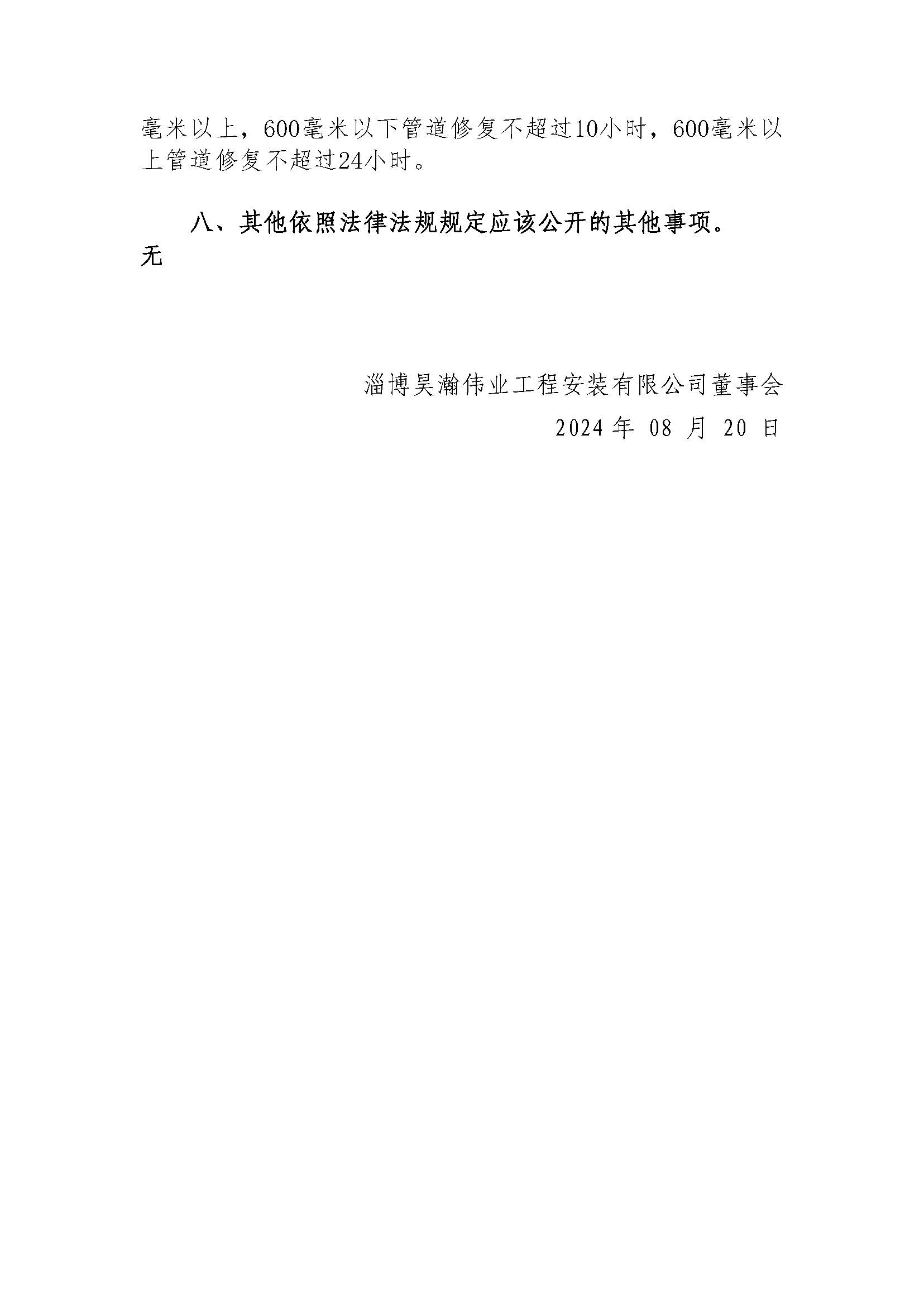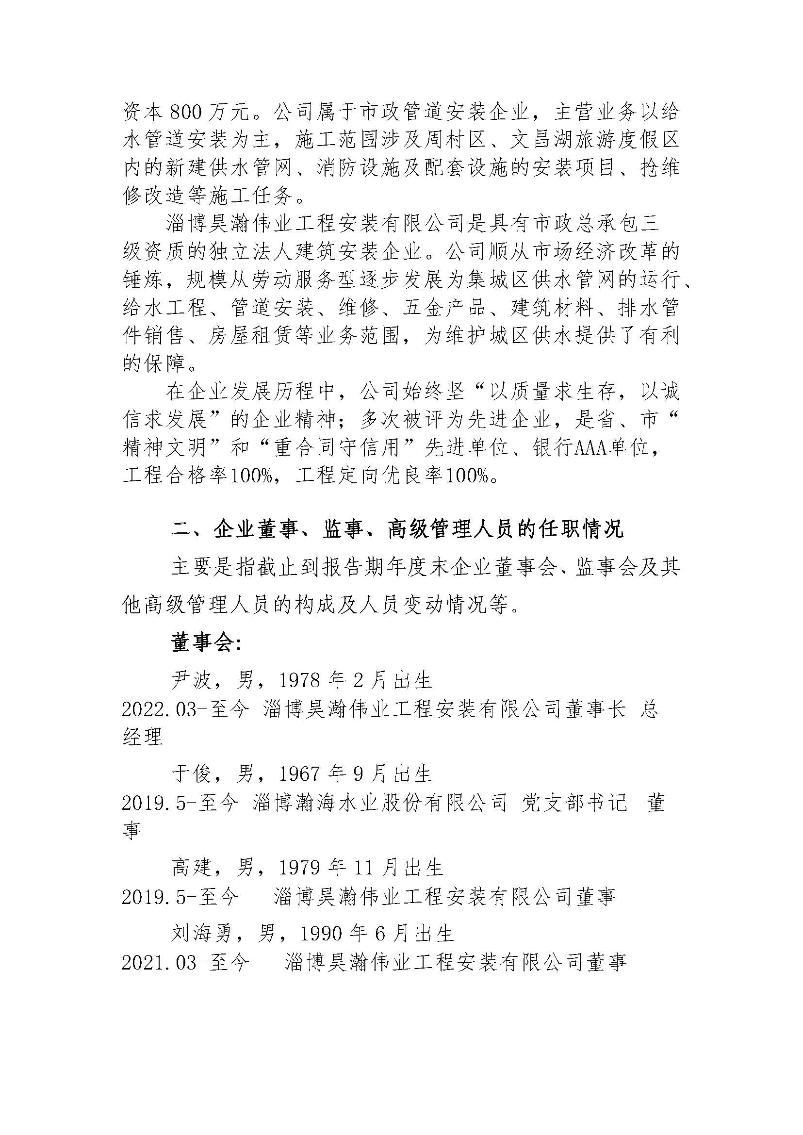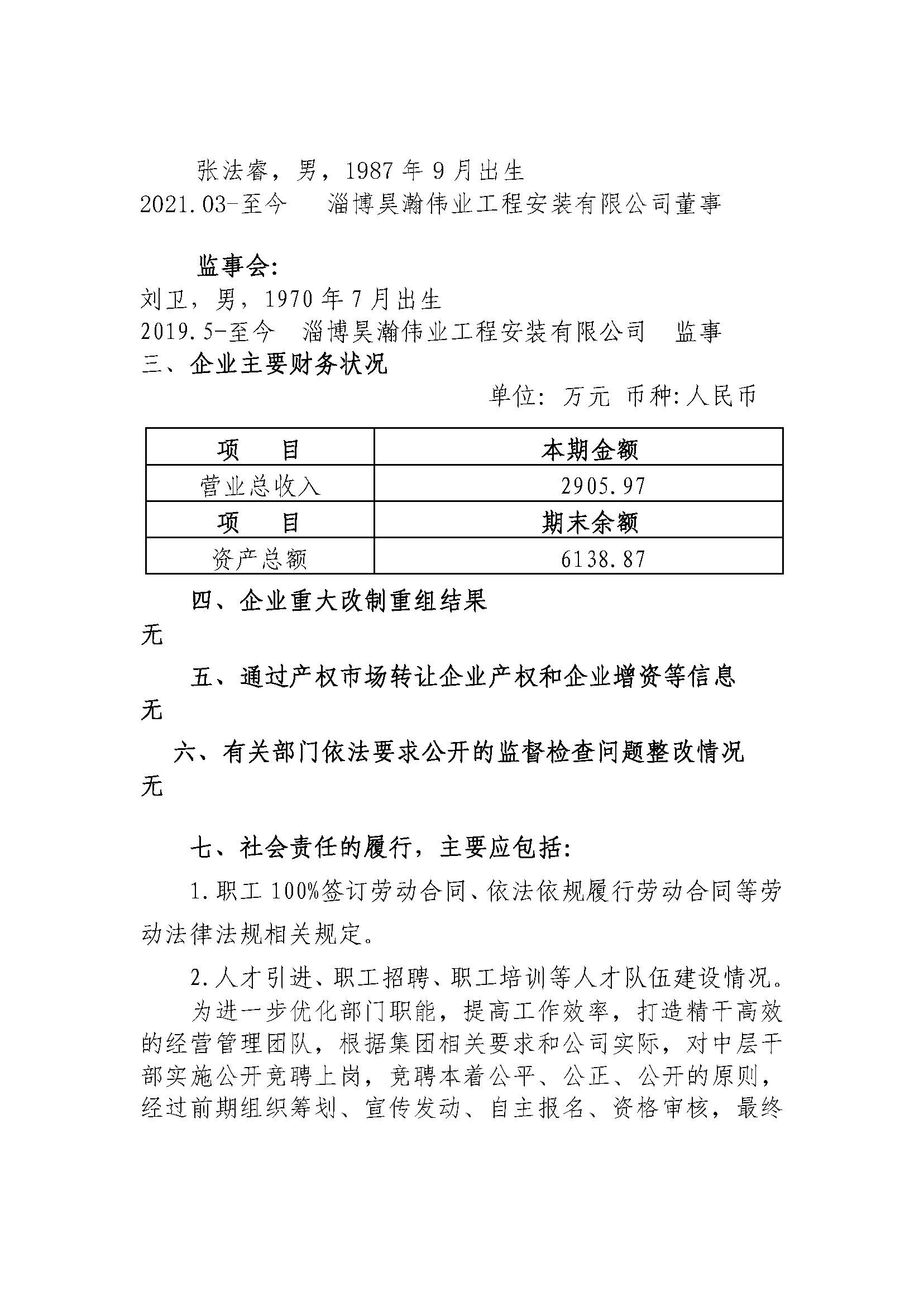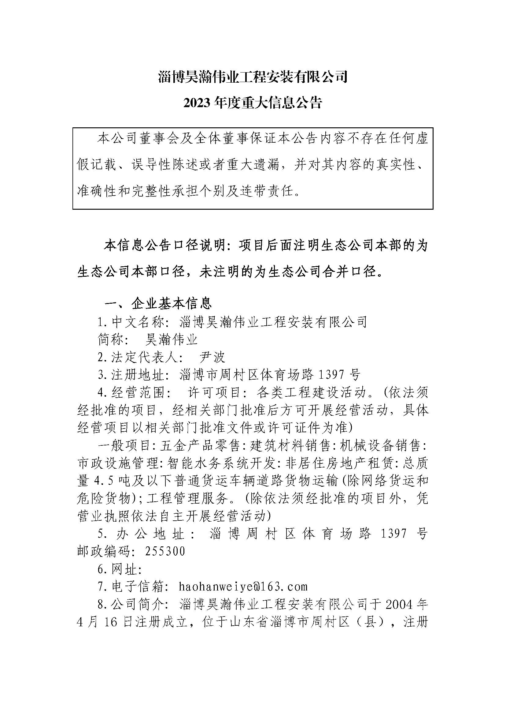 淄博昊瀚伟业工程安装有限公司2023年度重大信息公告